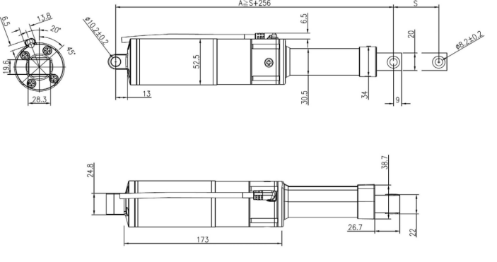 铝合金内外管设计,测试负荷 150KG空载速度可达 18mm/s ,满载 6mm/s行星齿轮传动,寿命可达三万次