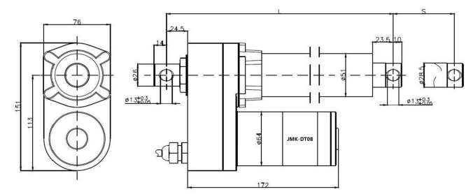 Stroke: 400~600mm L =S+300mm支持安装电位计,标配行程开关,离合器图纸安装孔向为正 90 度,(标准)