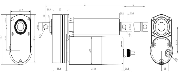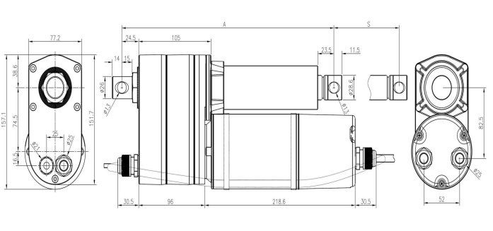 Stroke: 300~600mm L =S+375mm支持安装电位计,标配行程开关,离合器图纸安装孔向为正 90 度,(标准)