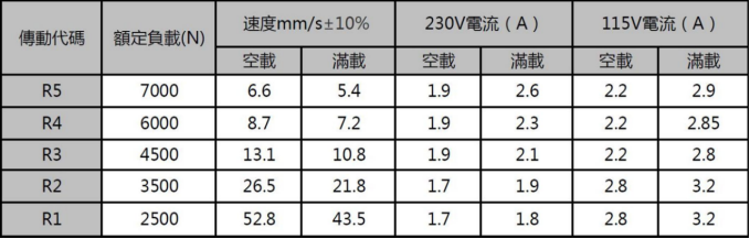 最大速度在负载 250KG 时可达 43.5mm/s静态负荷可达到 13600N