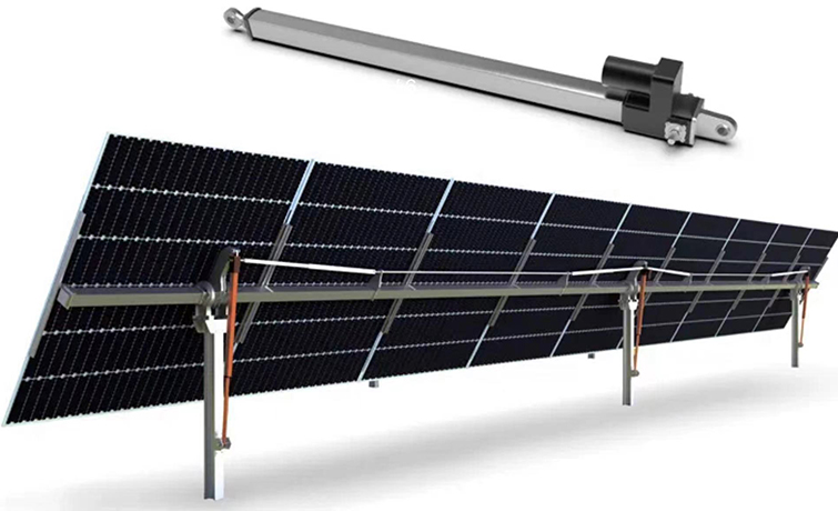电动执行器可以用于电池板/反光板追光系统,配合控制器来推动支架机构以保持电池板/反光板一直垂直于太阳光。