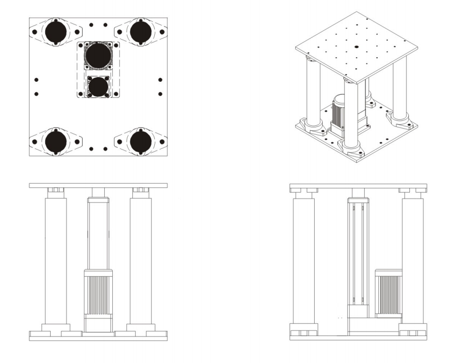 升降平台由行走机构、电动控制机构、支撑机构组成的一种升降机设备。利用电机传动使电动缸的活 塞向上做提升运动,其额定推力、额定速度、额定位置通过伺服驱动器反馈数据信息到PLC、 上位机、 PC进行控制调整。
